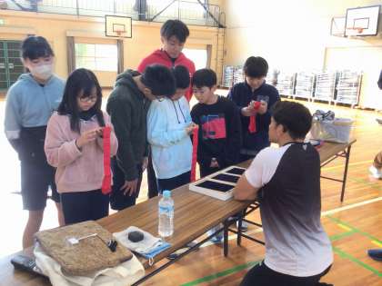 トヨタ自動車の湯上剛輝選手が6年生との交流授業に来校されました。ご自身の学生時代のことや陸上競技との出会い、円盤投げの面白さをお話ししてくださいました。運動場では用意してくださった安全な児童用の円盤を使い、投げ方を指導してくださいました。楽しく取り組めた6年生たちは自ら追加練習を申し出ていました。体育館ではボッチャに取り組みました。児童チームと教員チーム、アスリートチームと順番に対戦しました。最後に児童からの質問機会がありましたので、円盤投げの競技としての面白さや、苦しい時の気持ちの切り替え方などを湯上選手に伺うことができました。