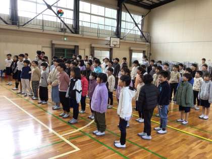 くすのき学習学芸発表会で披露する全校合唱の練習をしています。1月の合唱曲を前倒しで練習しています。干支をテーマにした曲です。