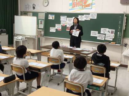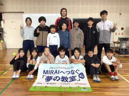JFAこころのプロジェクトMIRAIへつなぐ「夢の教室」を5年生が受けています。講師はデンソーエアリービーズ元選手の森谷史佳さんです。5年生と森谷さんは一緒に体育館でレクリエーションを楽しみながら交流を深めました。後半は5年生教室で森谷さんの経験を聞き、それを参考に5年生は自分の将来の夢を考えていきました。