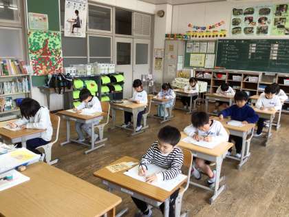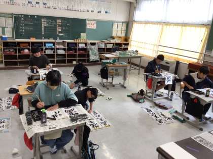 3・4時間目は書き初め大会です。何度も練習をしてきました字です。新年の決意を字に込めて、丁寧に取り組んでいます。