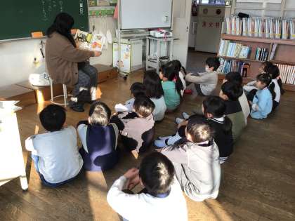 今朝は、ほたるの会による絵本の読み聞かせの日でした。