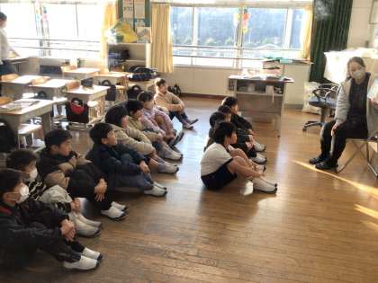3年生はソリで遊ぶお話でした。そのソリは壊れたベッドで、おばあさんが楽しく動物たちと遊ぶお話でした。ささいな事を気にせず状況を楽しむ懐の深さが素敵なおばあさんでした。