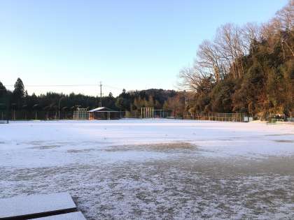 今朝は気温が一層下がり、学校周辺は氷点下です。校庭に雪がうっすらと積もっています。道は滑りやすいので、登校の際、慎重に歩いてください。
