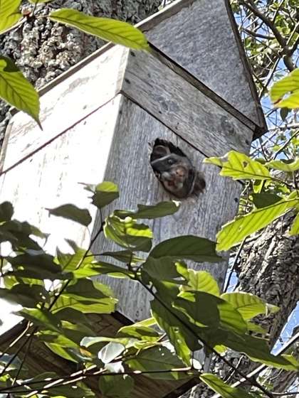 修理に駆けつけてくださったのは10年前の設置からお世話になっているデンソーの福西さんと高田さん、地域学校共働本部の清水さんと古田さんです。修理しない巣箱からムササビが顔を出し、作業者は癒されました。