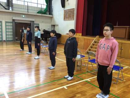 体育館で6年生が卒業式の練習をしますので立会いました。大変落ち着いていて、動きが優雅に見えました。明日は在校生との合同練習です。