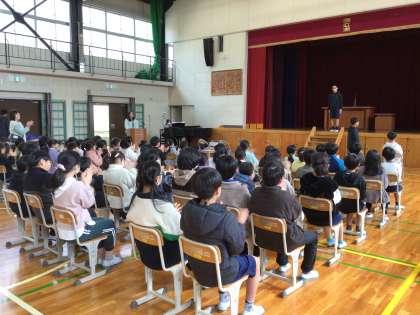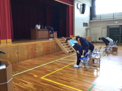 2時間目に卒業式の練習を行っています。卒業生と在校生の初めての合同練習です。校長式辞の部分では、皆で卒業をお祝いする気持ちと儀式に参加する心得を話しました。ちょうど1週間後が卒業式です。