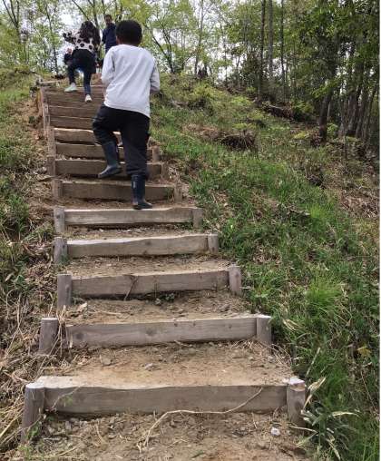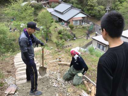 みんなで力を合わせて、道ができました。卒業生もボランティアに参加してくれました。丸根山は、子どもたちの楽しい学びの場です。たくさんの方にご協力いただき、子どもたちが安心して活動ができるようになりました。ありがとうございました。