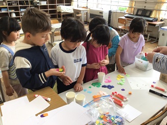 1年生が図工でこいのぼりを作っていました。うろこの色紙を選ぶとき、お先にどうぞと友だちに譲っている子がいました。譲っている子を見つけた子が、「〇〇くん、取っていいよ」と優しく声をかけていました。思いやりが広がって素敵です。