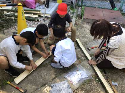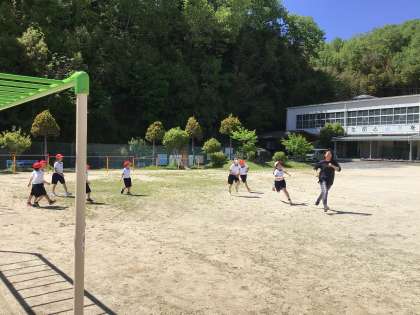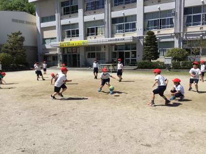 ろんろんタイムの運動場の様子です。子どもたちが元気よく遊んでいました。ドッチボールのコートからは歓声が上がっています。鬼ごっこや遊具遊び、何か作るのに夢中になっている子もいました。とても楽しそうです。