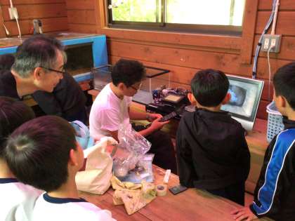 4月28日(月)に、株式会社デンソーのエンジニア福西さんと高田さんが、ボランティアで、水族館のムササビモニターの整備をしてくださいました。モニターの録画ができるようになったので、ムー君の夜の様子を再生して見ることができます。放課に、一生懸命整備している福西さんたちに出会った子どもたちが「ありがとうございます!」と伝えていました。子どもたちのためにありがとうございます。
