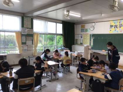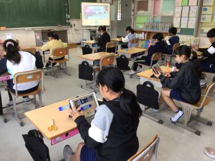 5年生が、図工「形に命をふきこんで」の学習で、学習用タブレットのコマ撮りアニメーションの仕組みを使って、作品を作っていました。互いの作品を鑑賞し、とても楽しそうでした。