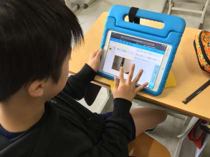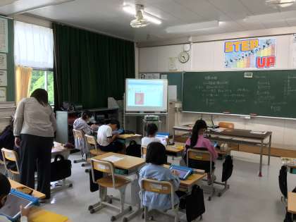4年生は、理科「季節と生物」で、植物の成長の様子が季節によってどのように変わっていくのかを学びます。子どもたちは、ゴーヤの種をじっくりと観察し、学習用タブレットを上手に使って記録していました。ゴーヤの成長が楽しみですね。