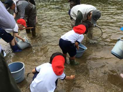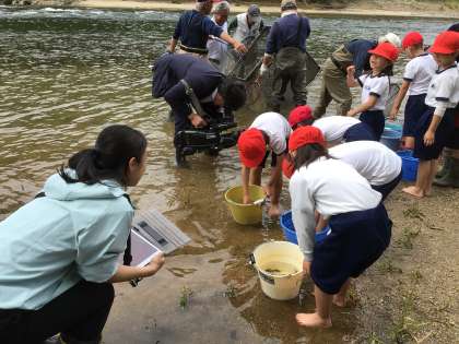 1・2年生 稚魚放流2