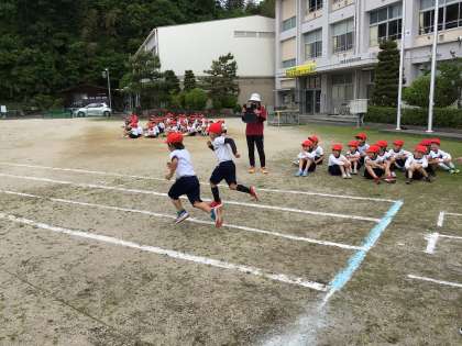 全校で、体力テストの種目「50メートル走」を実施しました。「がんばれ!」と応援する声が響きました。どの子も、自己ベストタイムを目指して、力いっぱい走りました。