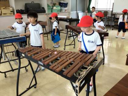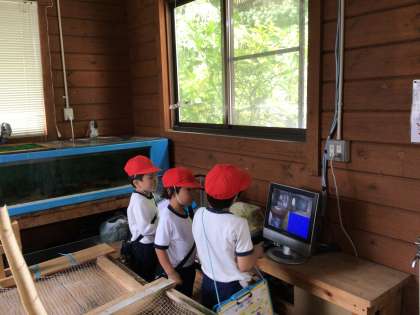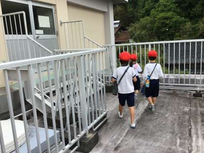 1・2年生が、学校探検を行っていました。2年生が、1年生をリードして、教室や校庭を案内しました。