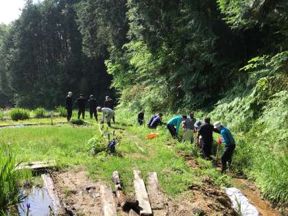 さらさわ川の補修や、丸太の皮むき、草刈り等、様々な作業を行いました。