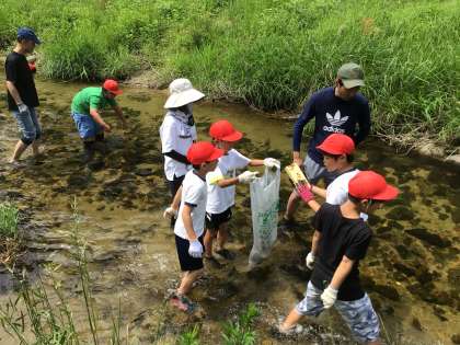 4年生はミニ水族館の紹介と飯野川清掃、5年生は丸根山のムササビの紹介とビオトープ整備、6年生は水質測定調査の活動の説明と矢作川採水地の清掃を行いました。それぞれ保護者に向けて、自分たちの活動を上手に紹介し、清掃活動に取り組むことができました。