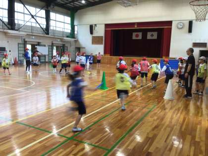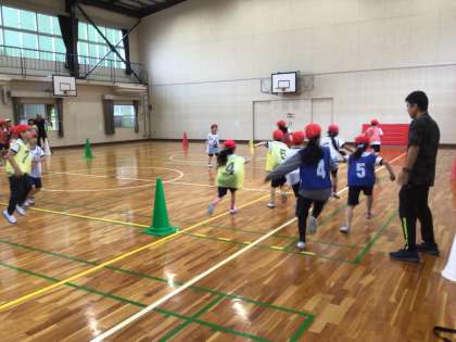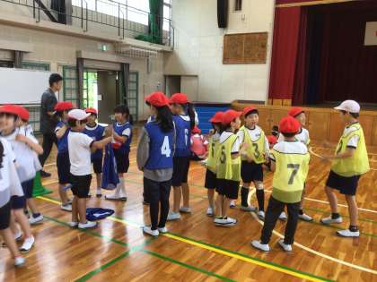 体育館から、3・4年生の元気のよい声が聞こえてきました。体育の授業で、リレーをしていました。ポイントを確認したり、作戦タイムで相談したりして、コーナートップやバトンパスゾーンでのバトン受け渡しがどんどん上手になりました。