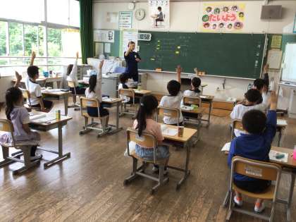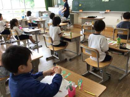 2年生が、算数の学習で、(2位数)+(2位数)の筆算の仕方を学んでいました。子どもたちは、数え棒を操作しながら考えたり、積極的に意見を交流したりしていました。