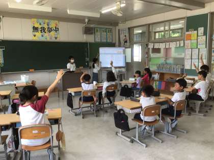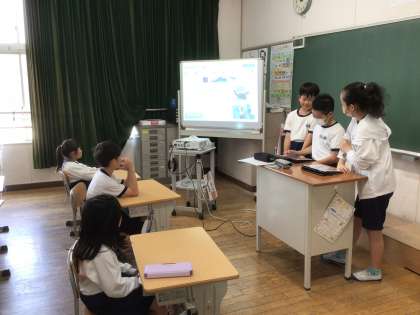 縦割り班に分かれて、自然に学ぶ会の計画を立てました。6年生が、しおりとパンフレットの案内図を紹介しながら、話し合いを進め、みんなで見学コースや並び方などを決めていきました。