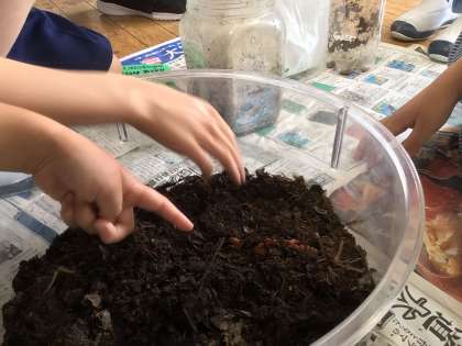 1年生が、「見て!カブトムシの幼虫が、さなぎになったよ!」と教えてくれました。