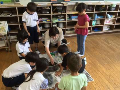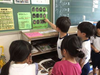 みんなで、そっと土をかけて、霧吹きで水分をあげていました。図書室の本で、カブトムシのことを調べて、卵のことを説明する子もいました。子どもたちは、成虫になるのを楽しみにしています。