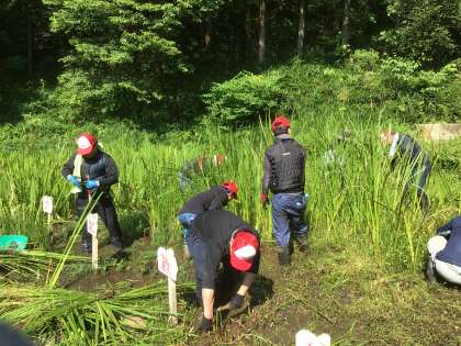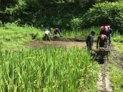 6月29日(日)に、丸根山ボランティアが行われました。トヨテツボランティア倶楽部の方と、地域の方、教職員合わせて約15名で行いました。子どもたちが、安心してビオトープの生き物を観察できるように草刈りをしたり、トンボの生育ができるように菖蒲を抜いたりして、整備しました。ご協力ありがとうございました。