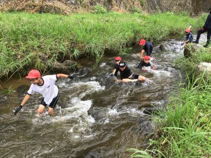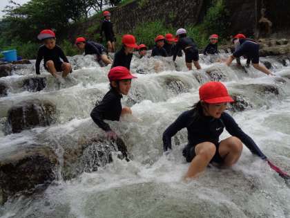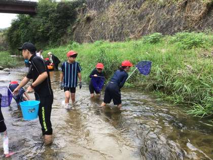 川掃除の後、ボートに乗ったり、生き物を探したりして遊びました。子どもたちの歓声が響きました。