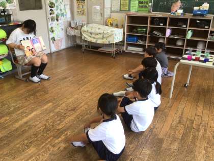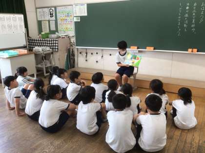 図書委員により読み聞かせを行いました。図書委員が、担当する学級で、自分の選んだ本を読みました。