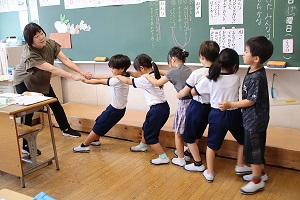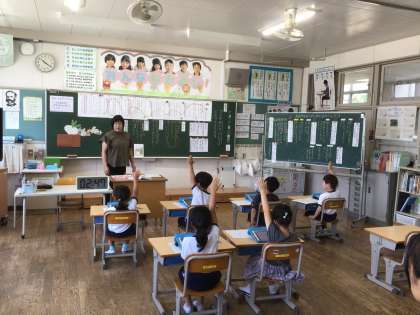 7月14日(月)に、1年生が、国語「おおきなかぶ」の研究授業を行いました。お話を読んで、不思議に思ったことをみんなで考えながら、登場人物の気持ちを読み取りました。たくさんの先生が参観する中、はきはきと意見を発表しました。