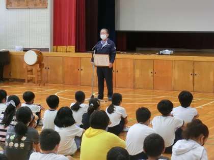 夏休み前集会で、本校に朝日ニュースを寄贈してくださっている大新運輸さんに、感謝状の贈呈を行いました。子どもたちのためにありがとうございました。
