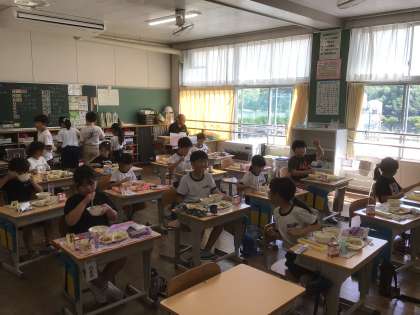 夏野菜の収穫をしている学級もありました。久しぶりの給食の時間も、とても楽しそうでした。9月からも、子どもたちと一緒に、楽しいこと、嬉しいことを見つけて、笑顔いっぱいの毎日にしたいと思います。