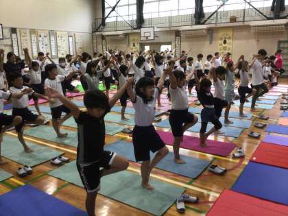 9月25日(木)に学校保健委員会を行いました。テーマは「 ぐー・ぺた・ぴんが大事なわけ 体幹をきたえてよい姿勢で生活しよう」です。保健委員会の子どもたちが司会をし、姿勢よく過ごすことはなぜ大切なのかを発表しました。ヨガ講師の方をお招きして、体幹を鍛えるキッズヨガを楽しく学びました。