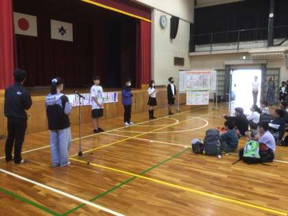 6年生が、修学旅行に出発しました。修学旅行スローガンは、「今鹿(しか)行けない最高の修学旅行へさあ行こう」です。全員が楽しく、ルールやマナーを守り、歴史を学びたいという願いが込められています。出発式も大変立派に行いました。