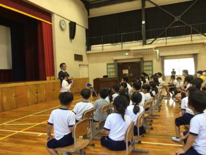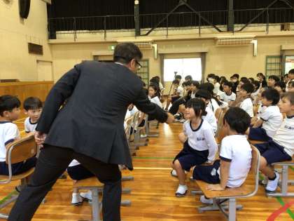 10月8日(水)に家庭教育講演会が行われ、全校児童や保護者の方、地域の方が参加しました。講師の堀内裕一朗氏をお招きして、「言葉の力でやる気を引き出すPEPトーク」のお話をしていただきました。子どもたちは、「できる!できる!かならずできる!」など、自分や周りを明るくする言葉を学ぶことができました。