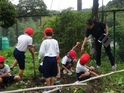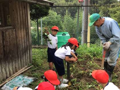1・2年生が、サツマイモ掘りをしました。ボランティアの小島さんと、校内支援員の鈴木さんに手伝っていただきました。子どもたちは、「やったあ!」「大きいのがとれたよ!」と、歓声を上げながらサツマイモを掘り、とても楽しそうでした。