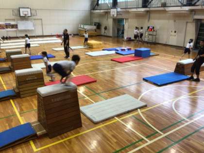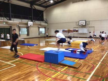 3・4年生が、体育科「とび箱運動」で、開脚とびや台上前転の練習をしていました。いろいろな高さの跳び箱やマットとびができる場を選び、自分の目標に向かって、何度も挑戦する姿がありました。