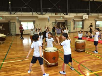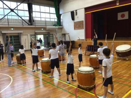 10月16日(木)に、3・4年生が、和太鼓体験を行いました。講師の松平わ太鼓の方に、バチの持ち方や、太鼓の打ち方を教えていただきました。子どもたちは、「は!」と掛け声をしながら太鼓を打ち、とても楽しそうでした。