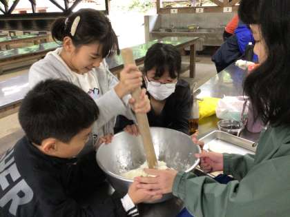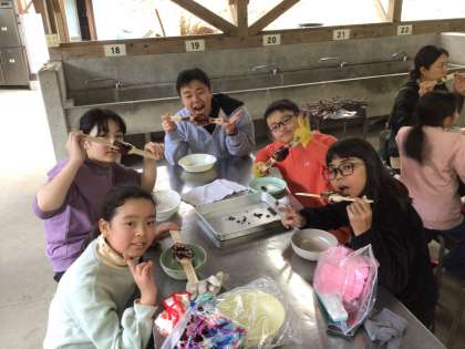 昼食は、みんなで協力して、五平餅を作りました。もちもちでとてもおいしかったです。退所式では、センターの方から、キャンプファイヤーのチームワークのよさを、ほめられました。子どもたちの感想では、自分で考えて行動することの大切さを学んだと、発表する子がいました。