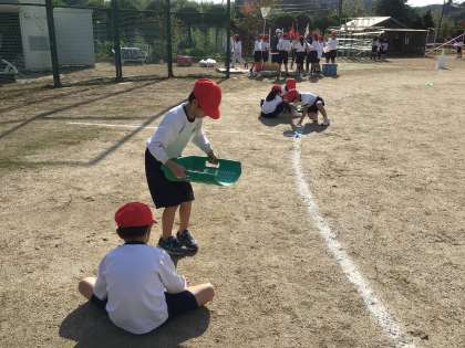 みんなで力を合わせて、頑張りました。明日の運動会が楽しみです!