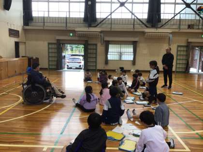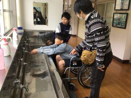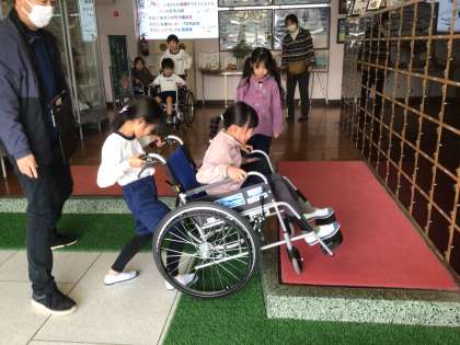 11月12日(水)に、3年生が福祉実践教室を行い、車いす体験しました。車いす体験をして考えたことを意見交流し、だれもが安心して使う場所になれば、みんなが幸せになれると思いをもちました。