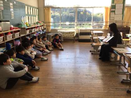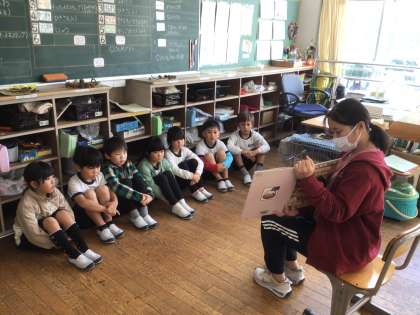 教員による読み聞かせがありました。学級の友だちと一緒に、本の世界を楽しむ時間です。