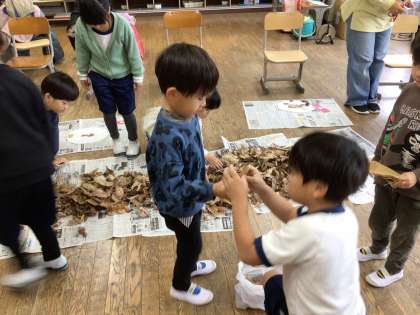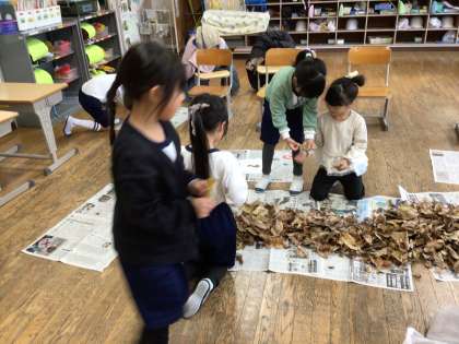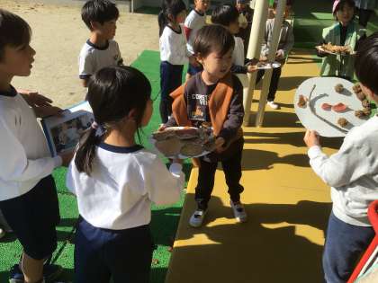 11月25日(火)に、1年生とこども園の園児たちが交流しました。次の日には、一緒に作った作品を届けました。1年生は、園児たちに「ありがとう」と言われて、とても嬉しそうでした。