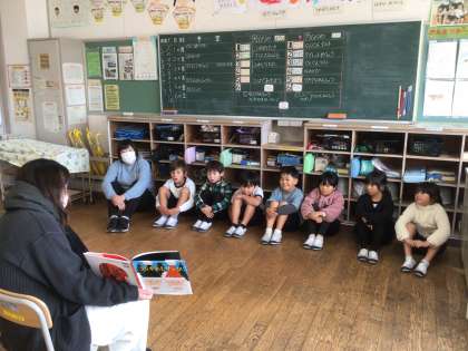 ほたるの会の皆さんが、絵本の読み聞かせをしてくださいました。朝の15分間の読み聞かせは、子どもたちの大好きな時間です。今日も子どもたちは、楽しそうに聴いていました。