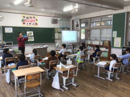 2年生が、算数科「三角形と四角形」の学習で、長方形と四角形について、話し合っていました。紙を折ることによって、長方形と四角形の違いに気づくことができました。