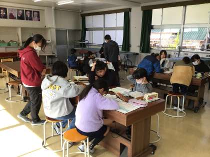 5年生が 音楽「詩と音楽の関わりを味わおう」で、「冬げしき」の歌詞の情景を思い浮かべて、どんな歌い方がよいか考えました。