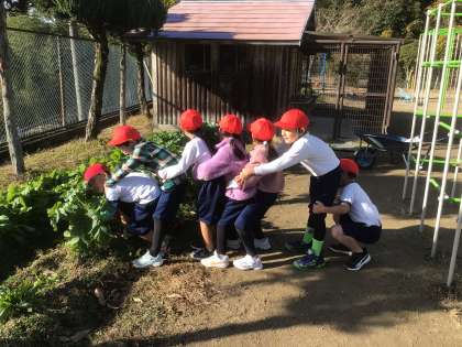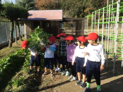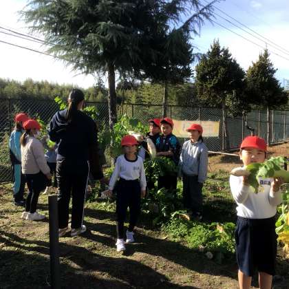 1・2年生が、冬野菜の収穫をしていました。子どもたちは、大きな大根やラディッシュをたくさん収穫し、とても嬉しそうでした。子どもたちは、野菜を育てるときにお世話になった人たちのことを思い出し、「小島さんにもあげたいな」と言っていました。