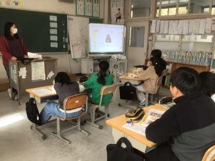 5年生が、外国語科「Unit 6 At a restaurant」の学習で、外国語の音声を聞いていました。子どもたちは、外国語を聞いて内容を理解し、「それっておいしいの?」と、笑っていました。正確に聞き取ることができるなと感心しました。