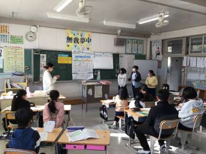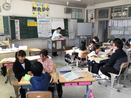 5年生が、保健の授業で、安全な行動やけがをした時の対応てについて、学んでいました。グループになって、けがに応じた手当について発表しました。