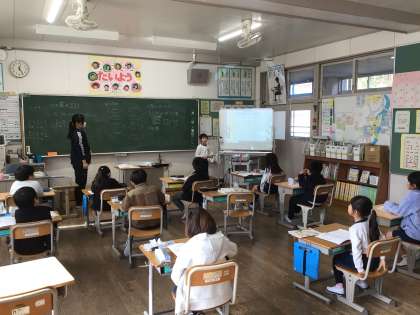 2年生が、算数科「かけ算のきまり」の学習で、九九の表の決まりを見つけていました。自分の考えを説明したり、友達の意見をよく聞いたりして、理解を深めました。